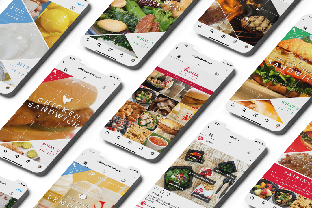 Chick-fil-A wanted to be more transparent about their menu and that led us to build an experience that allowed fans to learn about those delicious looking meals they saw in their Instagram feeds. Tags on every photo we posted led to custom Instagram handles for each product that included nutritional info, pairing recommendations, fun facts and more.